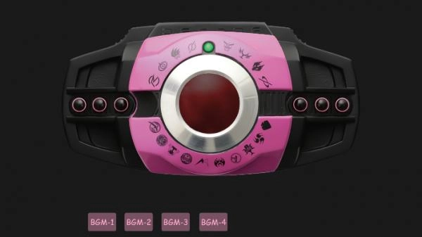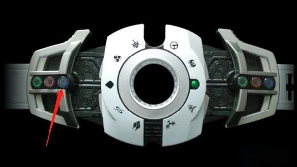4、点击红色按钮来组装插有卡片的腰带,伴随着激昂的音乐声开启变身过程。