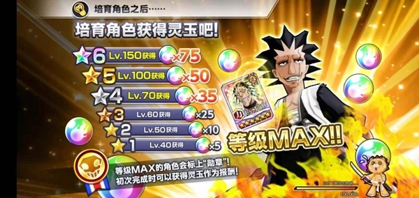 勇者亡魂也可以通过修炼人物获得灵玉。人物刚修炼到一定阶段,就会获得凌宇作为系统奖励。一星角色达到40级可获得5个灵玉;二星角色50级可获得10个灵玉;三星角色60级可获得25个灵玉;四星角色70级可获得35个灵玉;五星级人物可以获得100灵玉50灵玉;6星角色150级可获得75个灵玉。需要注意的是,培养角色获得的灵玉奖励将由系统通过礼盒发放,需要及时领取。