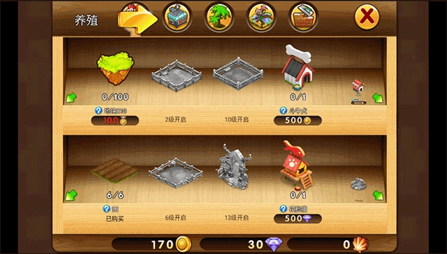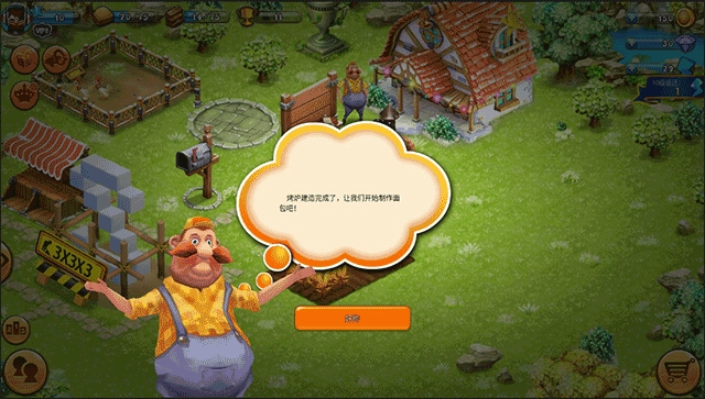 1、初步收获完成后,点击右下角的购物车图标,准备建造烤炉;