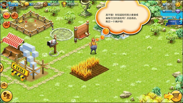 3、根据教程提示开始第一次麦田收割操作;