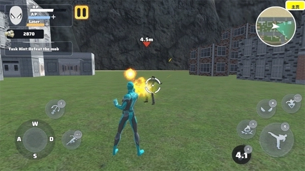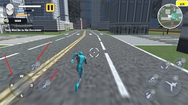 3、左侧虚拟摇杆负责角色移动方向,旁边的特殊按钮则用于发射绳索或启动冲刺功能,掌握操作节奏才能实现流畅的城市飞跃。