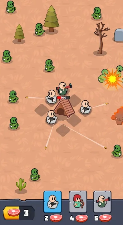 这款基地防御题材的僵尸生存游戏,画面风格充满幽默趣味。玩家的核心目标是组建一支战力强劲的军队,以此抵挡一波又一波僵尸的侵袭。游戏里设置了机枪兵、弓箭兵等多种类型的士兵,等待玩家逐步解锁;当所有士兵种类都收集齐全后,玩家就能根据防御点位的特点,进行更合理的兵力部署与阵型规划。需要注意的是,若未能在天黑前清除所有僵尸,便会挑战失败。对这类游戏感兴趣的朋友们,不妨来体验一下打僵尸的乐趣吧!