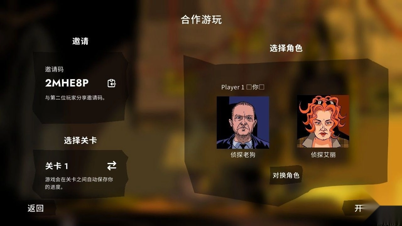 10、由你负责创建游戏,需要先选择角色和关卡,接着把邀请码发送给好友,之后点击开始即可。