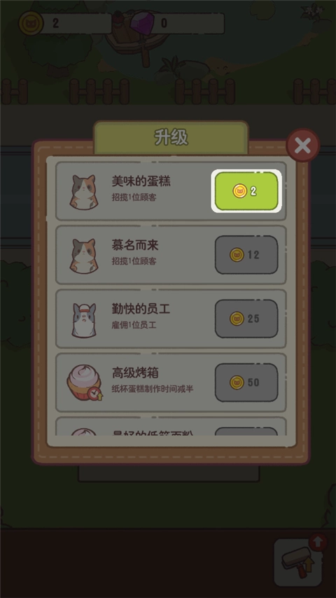 3、接着猫猫会自动为顾客制作纸杯蛋糕,所获得的金币能够用来升级工作台。