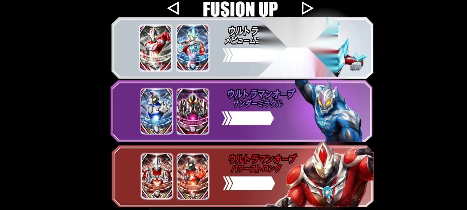 3、玩家可选择要融合变身的奥特曼卡片;
