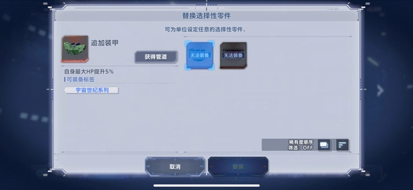 6、UR机体初始即可升级至最高等级LV100,SSR机体最高可升至LV90,SR机体最高可升至LV80,R机体最高可升至LV70,N机体最高可升至LV60。