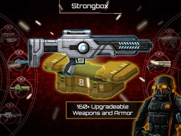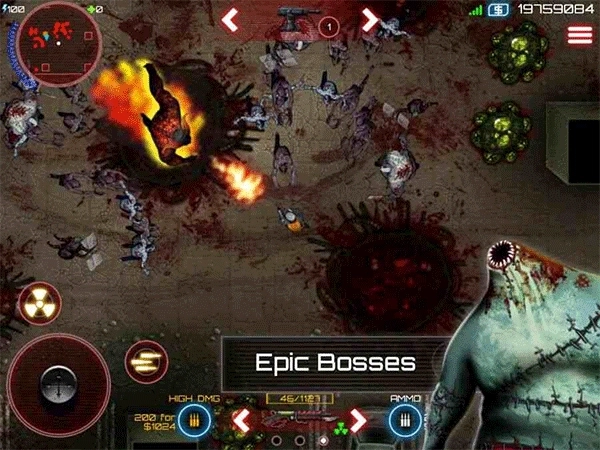 游戏是利用左右两个虚拟摇杆来操作主角的移动、瞄准与射击,并利用俯瞰的角度让玩家可以全方位的掌握战况。游戏中的僵尸也是一个比一个骇人,除了每只都不怕死的蜂拥而上之外,有的更是移动速度飞快、有的强大到难以击退,甚至有的还会放出诡异的虫子来攻击。让人不无时无刻神经紧绷,哪怕一个不小心,就会被僵尸们夺去宝贵的性命。