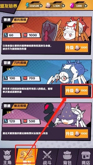 通关后玩家可获得的各种资源可用于“盟友”中升级伙伴的属性,更好的帮助玩家探险
