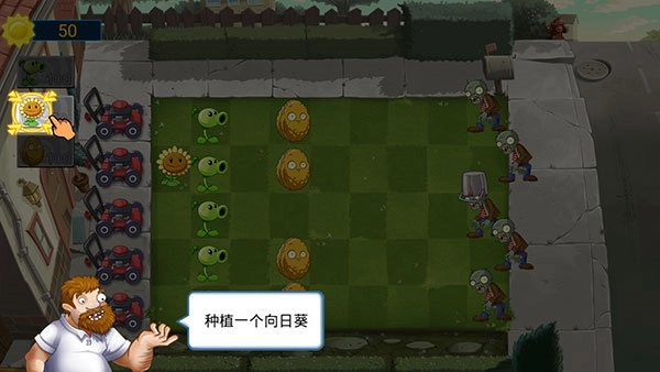 2、为了能更快地收集阳光,我们点击左侧的向日葵卡片来种植它。