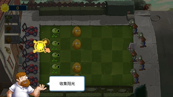 1、进入游戏关卡之后,我们首先需要点击掉落的阳光来进行收集。
