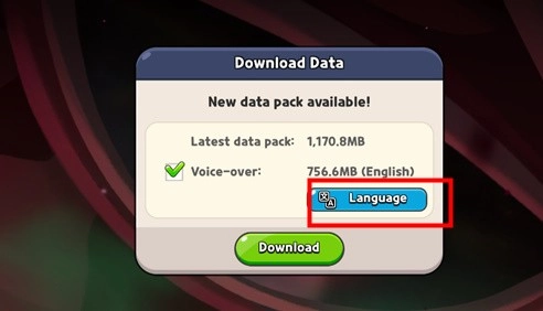 1、首次进入游戏时,界面会提供相关选项,此时点击“language”即可。