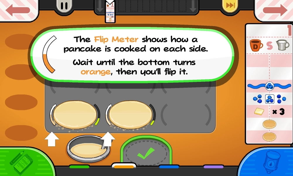 2、详细记录顾客需求,根据喜好制作煎饼,注意火候和时间控制,同时关注大厅中的新顾客,营造真实经营氛围。