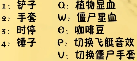 P:切换飞艇音效 F:切换全屏 V:切换僵尸手套