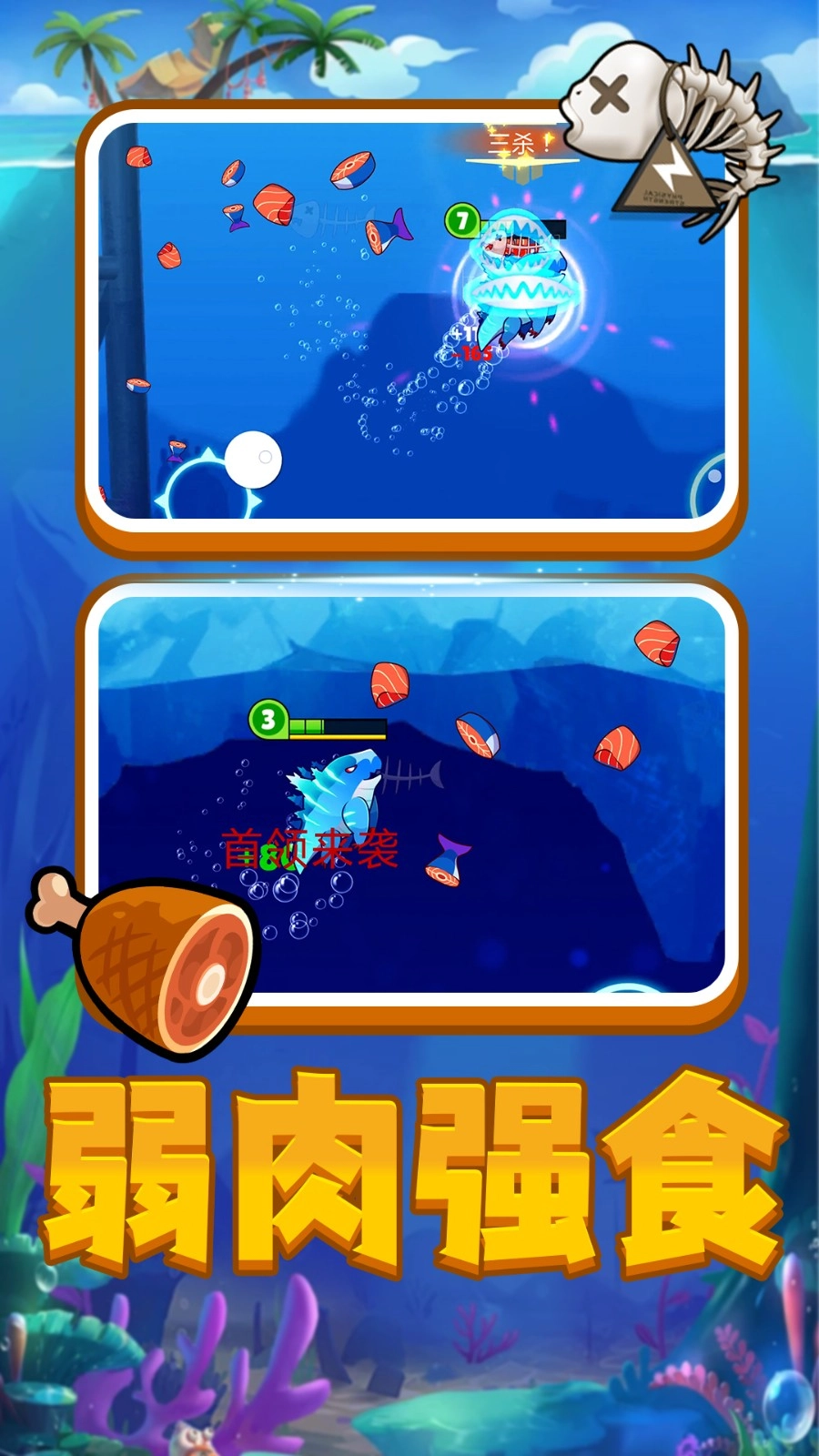 1.动态成长机制:身形与能力一同进阶,从弱小的鱼苗逐步蜕变为海洋主宰的历程清晰可感,每个阶段都对应着独特的生存方式。