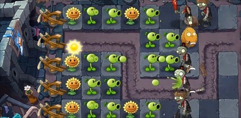 7、种上两棵豌豆射手,这样才能更有效地应对僵尸大军,后续玩法大同小异,就请玩家自行探索体验吧。