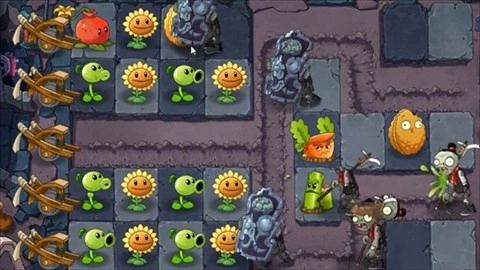 3、秦始皇陵1-3关卡:此关卡和前两关的玩法一致,依旧是借助现有的几种植物来开展防御,左边放置向日葵与豌豆射手,右边则安排竹子和坚果,在有需要的时候也能够布置土豆。