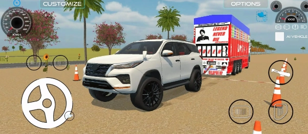 1、在印度车辆模拟器3D的路边商店中,陈列着各式各样的零件,这些零件能够用于升级你的交通工具。
