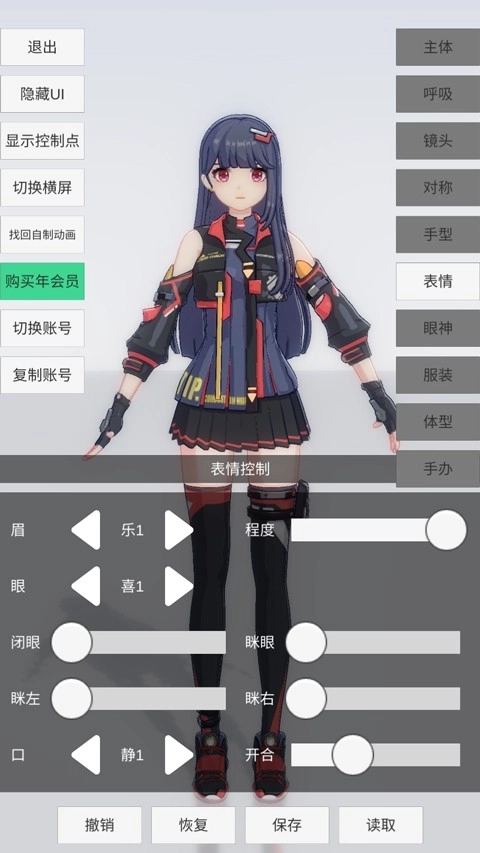 3、以及调整表情,支持眉毛、眼睛、嘴巴等多处细节调整。