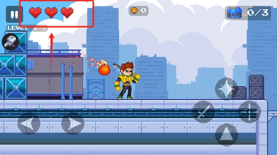 6、左上角显示了你的血量,拾取苹果可以恢复血量。