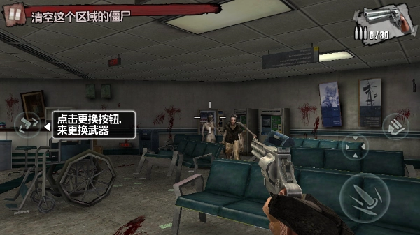 1、游戏采用俯视角射击玩法,玩家可借助虚拟摇杆操控角色移动及调整射击方向,从而灵活抵御从各个方向袭来的僵尸围攻。