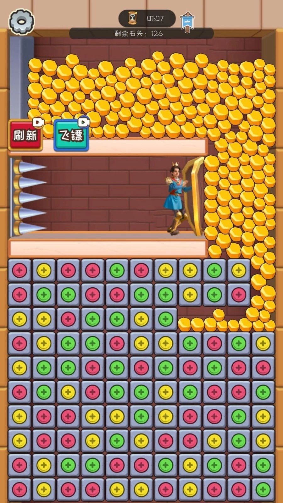 1、黄金关卡里,要把注意力放在能让石头快速下落的消除组合上,同时兼顾消除效率和金币获取,以此来实现收益的最大化。