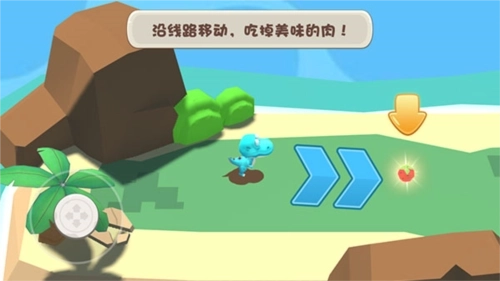 4、通过拖动左下角的虚拟轮盘来控制角色沿线路移动,吃掉美味的食物。