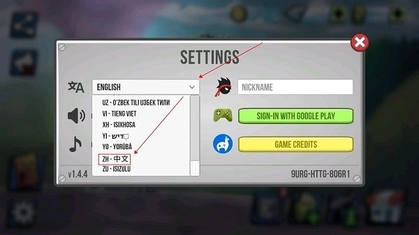 2、在语言选项下拉三角中,往下翻找到中文,点击即可替换。