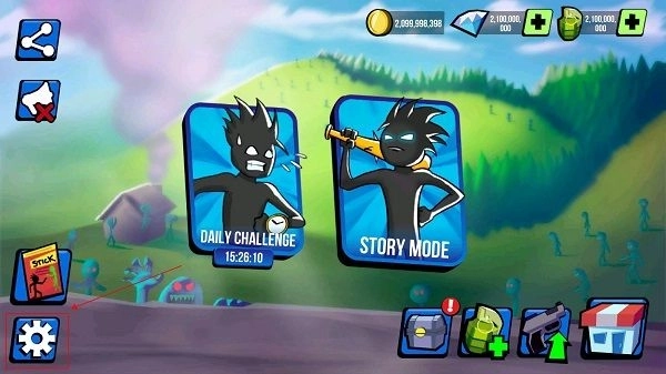 1、经第二次进入游戏后,点击左侧右下角的齿轮位置处,进入设置。
