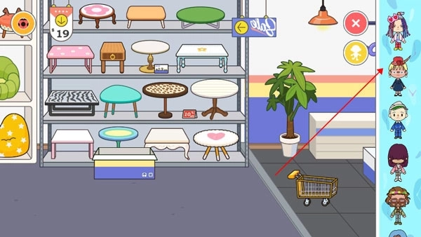 家具物品选择完毕后,点击页面右上角人物功能,并在其中选择一个人物。