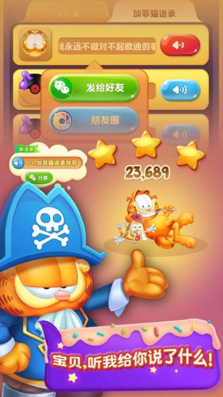 3这段30年的经典IP焕新登场!国民级休闲手游《加菲猫爱消除》正式获得加菲猫官方运营团队的独家正版授权,成为国内唯一拥有合法版权的加菲猫主题消除游戏。此次授权不仅保障了游戏中加菲猫经典形象、幽默台词等元素的原汁原味呈现,更意味着玩家将在正版加持下,体验到融合加菲猫慵懒治愈风格与趣味消除玩法的全新休闲体验。