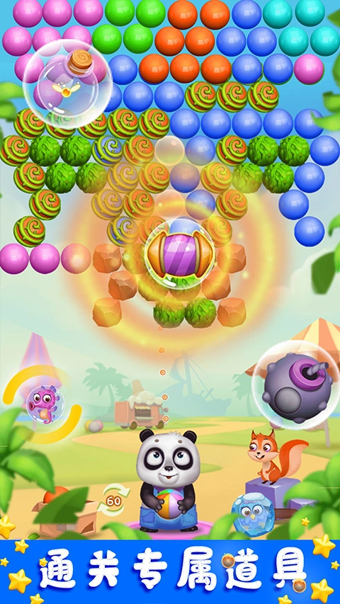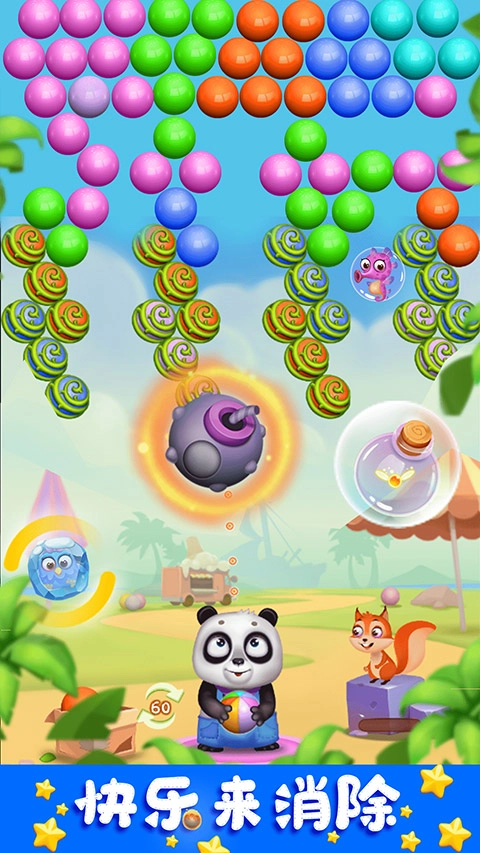 熊宝宝困在泡泡中,击破泡泡即可拯救萌熊;