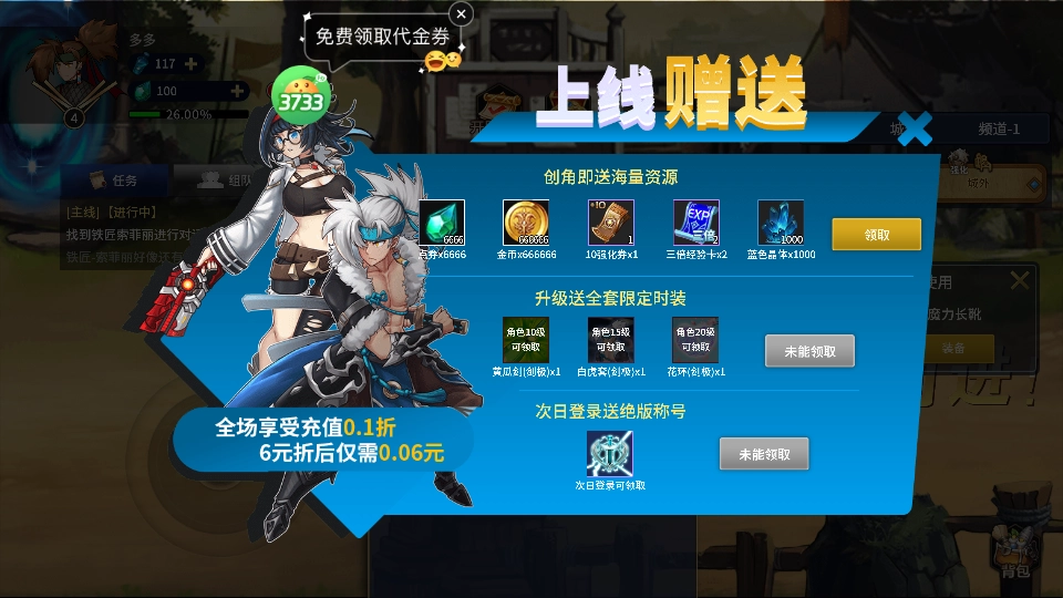 新玩家上线创角还能领取海量资源。