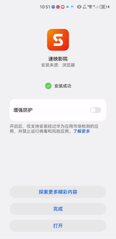 最后界面显示“安装成功”的提示后,点击下方的打开按钮,就能开启精彩内容的体验之旅了。