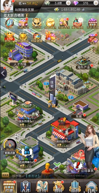 基础操作是拖拽放置建筑和划动升级,长按建筑物能够查看详细的收益报表以及维护成本。