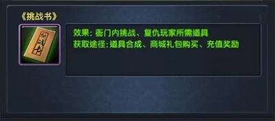 3、挑战书是衙门获取分数的核心道具,可用于在仇人榜单中复仇,或在查看更多榜单里挑战其他知名人士。至于获取途径,较为简便的方式包括在活动期间用出使令合成,也可通过限时商城礼包购买、限时充值奖励等渠道获得。