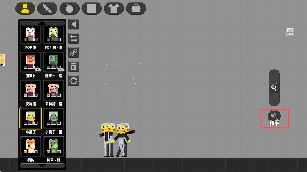 进入游戏后,先切换到「和平模式」,从角色列表里挑选居民并放置到场景中,完成小镇的基础人口布置。另外,你也能提前摆放感染体,为之后的对战做好准备。