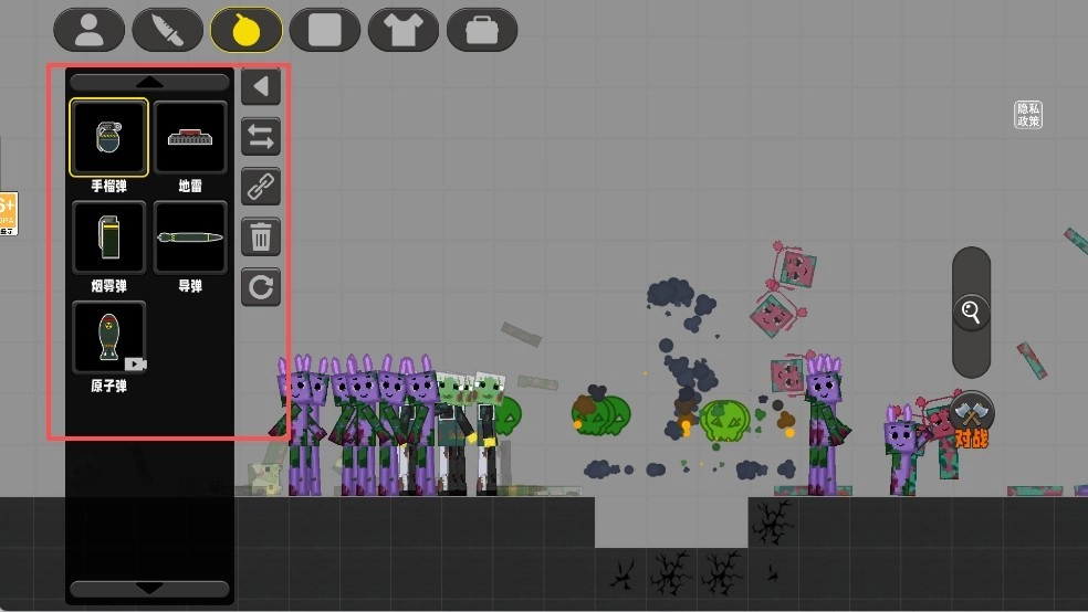 点击界面上方的炸弹图标,就能挑选「手榴弹」之类的武器道具,对感染体造成范围伤害,在紧要关头迅速清除敌人。