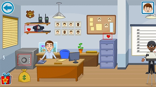 《我的小镇警察局》是一款产业经营放置模拟游戏。游戏采用横版平面画面设计,能让孩子沉浸式游玩并学习实用知识。玩家在游戏中扮演惩治罪恶的警察,抓捕罪犯是核心目标。玩家可自由设计情节与角色,游戏提供五个场景供选择,十分适合孩子与家长共同游玩。