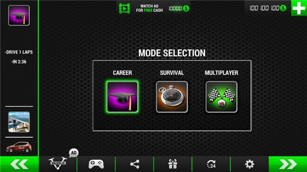 2、游戏包含生存模式与挑战模式,你能够挑选自己钟爱的赛车风格,在尘土弥漫的赛道上展开角逐。