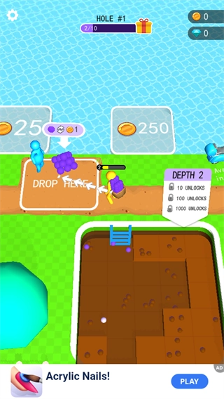 设计递进式挖掘机制,每清空一层地块就会进入更深层,从而获取更丰富的资源。
