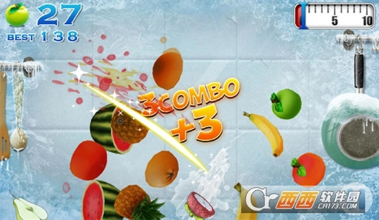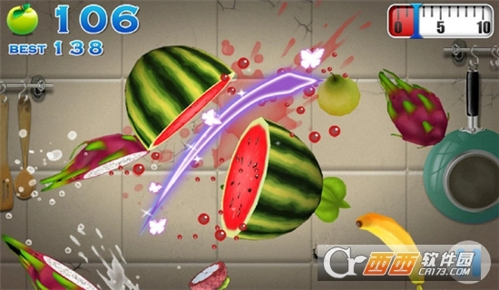 1、采用单手滑动的操控方式,模拟出逼真的切割体验,能让每一个水果从中一分为二。