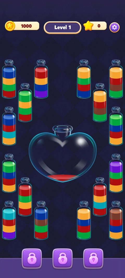 Water Match是一款休闲益智类的小游戏。这款游戏在不少平台都投放了洗脑式的广告,想必很多用户都想知道该如何游玩,所以今天小编就来给大家介绍一下这款游戏。它的核心玩法是液体分类,玩家需要把不同瓶子里的液体分别归置到相同颜色的瓶子中。由于不同颜色的液体在瓶子里的位置有差异,倒出时会有先后顺序的要求,因此玩家需要合理规划倒液体的顺序,才能完成每一种颜色液体的归类。