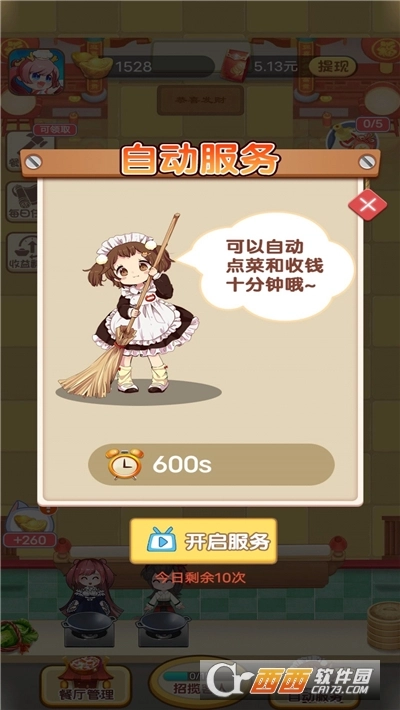 全民美食家红包版最新版是一款能领红包的休闲模拟经营餐厅游戏,它的玩法比较简单,和以往的餐厅经营类游戏差不多,玩家要招揽顾客、雇佣服务人员,完成各类不同的任务来获得对应的奖励,提升餐厅的等级,还可以通过满足顾客需求、每日打卡以及签到等方式领取红包奖励,在西西平台就能直接玩啦!