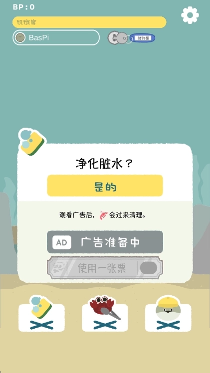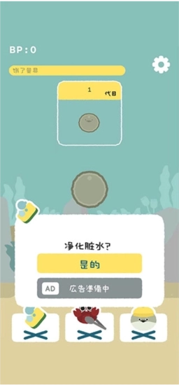 1、萨卡班甲鱼游戏刚开始时,我们得到的是虚无鱼BasPi的鱼卵形态,此时只需净化脏水,之后便是耐心等待它孵化。