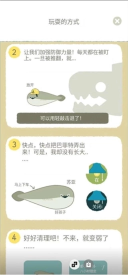 游戏开启时,你会拥有一条呆萌的小鱼苗,需要定时给它喂食、换水,否则它很快就会饿死或者被脏水毒死。喂食过量的话,它会被撑成“气球鱼”;喂食不足的话,它会直接“饿到翻白眼”。手残党纷纷表示:养这条鱼比带娃还要困难!
