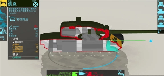 3、熟悉坦克世界里坦克的装甲防护、炮弹穿深以及模块布局