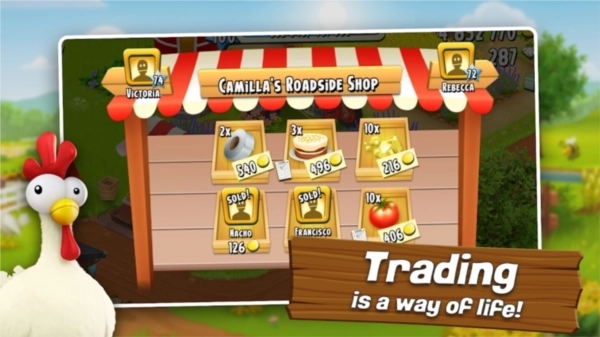 游戏里能升级的建筑不少,每种所需的材料各有差异。为了鼓励玩家之间相互交换,游戏设计了这样的机制:玩家会比较容易获取其中一部分道具,至于那些难以得到的大部分道具,就得通过和其他玩家交换才能凑齐。