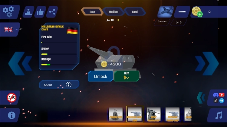防空模拟器手机版是一款趣味十足的射击游戏,玩家将在游戏中化身为防空指挥官,指挥各类武器抵御空中敌人的入侵,守护基地的安全!游戏内提供多种武器,玩家需要熟悉每种武器的特性,以此搭建防线,组合出不同的防御效果,从而更有效地进行防御作战。游戏拥有逼真的粒子特效和超高清的画面质量,为玩家带来沉浸式的游戏体验。防空炮模拟器手机版最突出的亮点,便是其逼真的粒子效果与环境画质——暂且不论游戏的五种“防空炮”各自具备怎样的演示机制,单是每种武器都能在细腻的天空背景中射出一道道绚丽光线,就足以让玩家为之着迷。精彩有趣的游戏体验、刺激无比的玩法设计,为玩家带来全新的射击乐趣。此外,游戏中还设置了一套摇杆用于控制炮管的朝向,另一侧则配备了无限制的“射击控制键”以及可放大瞄准视角的“瞄准键”,通过左右手的协同操作,能让你更自如地操控武器,感兴趣的玩家不妨来体验一番!