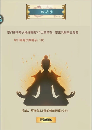 这是两个不一样的场所,下面那张图里的是练功房,它提升修炼效率的幅度是固定的数值,而且只有正副门主能免费使用,要是其他人想用就得交3块钱,这么做其实很不划算。