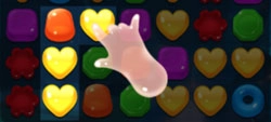 游戏的玩法是交换相邻糖果的位置,让三个相同颜色的糖果连成一条直线,这样就能消除这三个糖果(只要三个同色糖果相连就可以消除)。要是被消除的糖果正好是当前关卡需要收集的目标,那么在消除的同时也会完成对该目标糖果的收集。